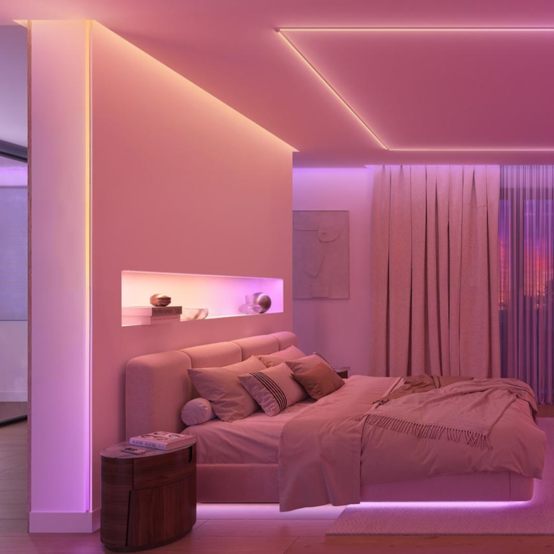 So với OmniGlow Lightstrip, phiên bản Flux linh hoạt hơn khi cho phép cắt ngắn hoặc mở rộng thông qua các phụ kiện ghép nối tương thích. Nhờ đó, người dùng có thể tùy chỉnh độ dài theo từng khu vực lắp đặt, giúp việc bố trí ánh sáng trở nên chủ động và phù hợp hơn với từng không gian.
