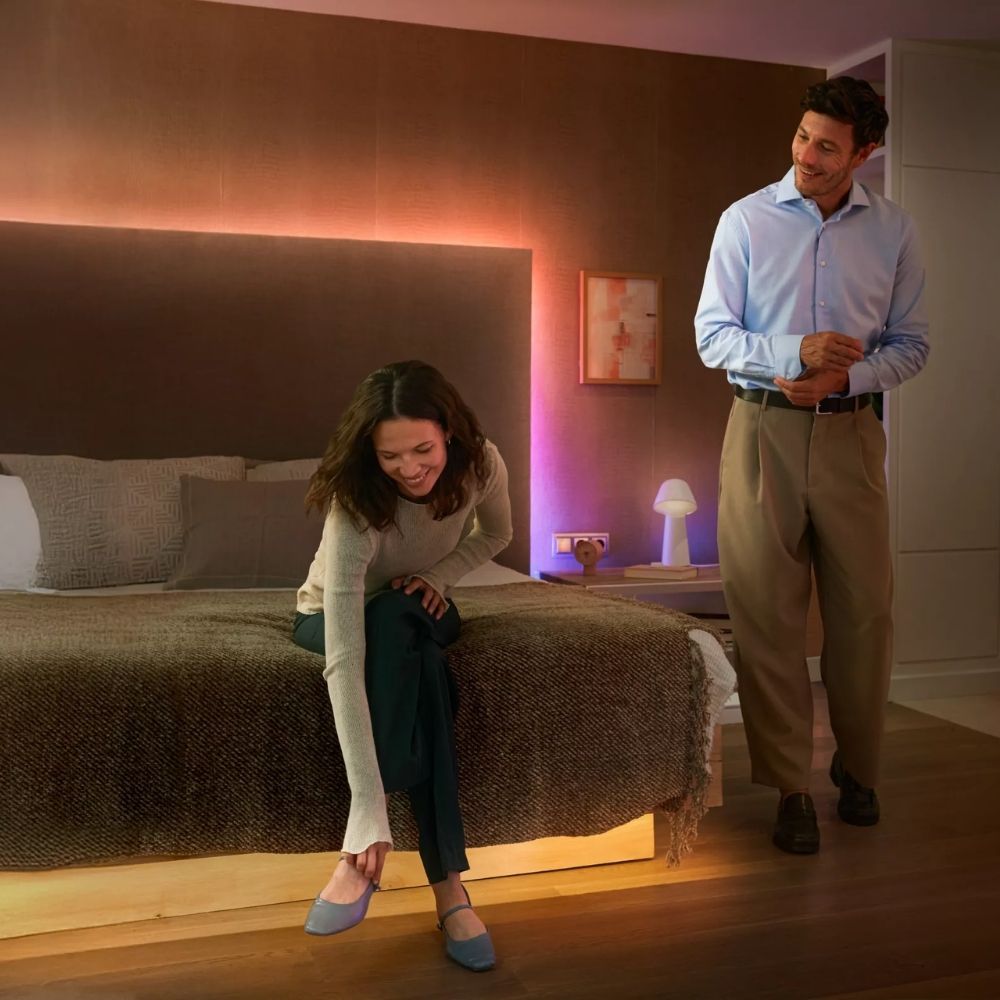 Khác với các dải LED dây thông thường, Philips Hue Essential Flex Lightstrip được thiết kế để gắn nổi trực tiếp lên tường, biến ánh sáng trở thành một chi tiết trang trí thực thụ. Nhờ lớp silicon cao cấp cùng bộ phụ kiện đi kèm, người dùng có thể dễ dàng uốn cong, tạo hình theo ý muốn, từ những đường nét mềm mại đến các thiết kế phá cách, đậm dấu ấn cá nhân.