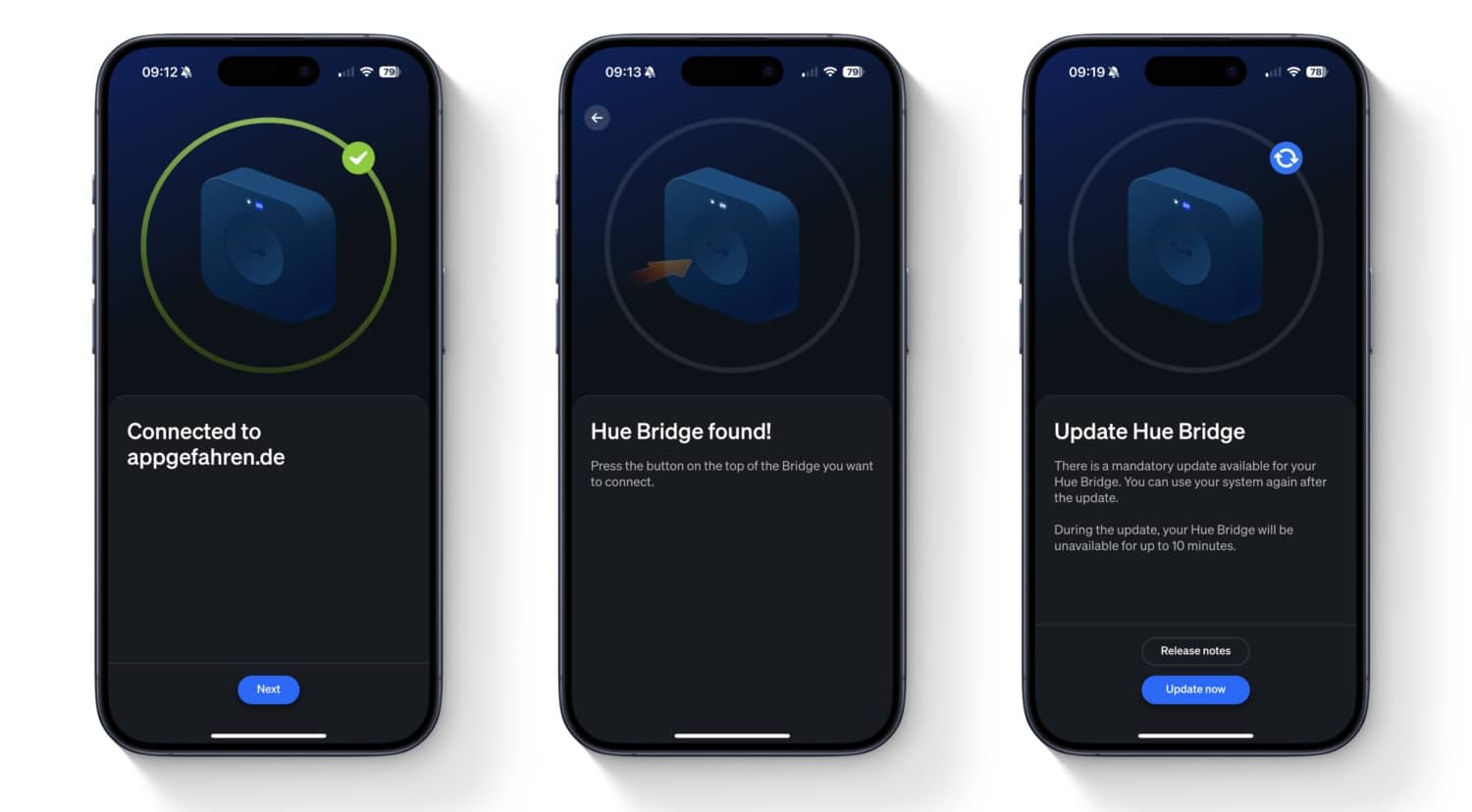 - Cả 2 Hue Bridge phải có cùng tài khoản và sử dụng Hue app phiên bản mới nhất