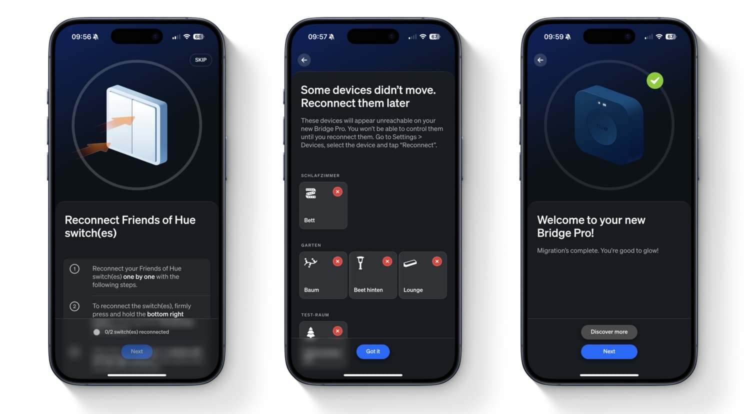 Việc chuyển dữ liệu từ Hue Bridge cũ sang Hue Bridge Pro không chỉ giúp bạn giữ nguyên toàn bộ thiết lập ban đầu, mà vẫn tận dụng được hiệu năng vượt trội của trung tâm điều khiển mới. Và giờ đây, hãy tận hưởng không gian ánh sáng linh hoạt, tốc độ phản hồi nhanh hơn và khả năng tương thích rộng hơn mà Hue Bridge Pro mới mang lại.