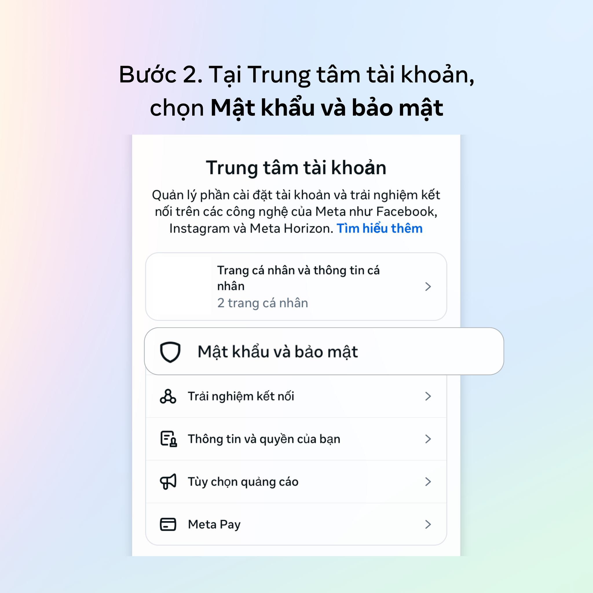 Bước 2: Tại Trung tâm tài khoản, nhấn vào Mật khẩu và bảo mật → Mã khóa