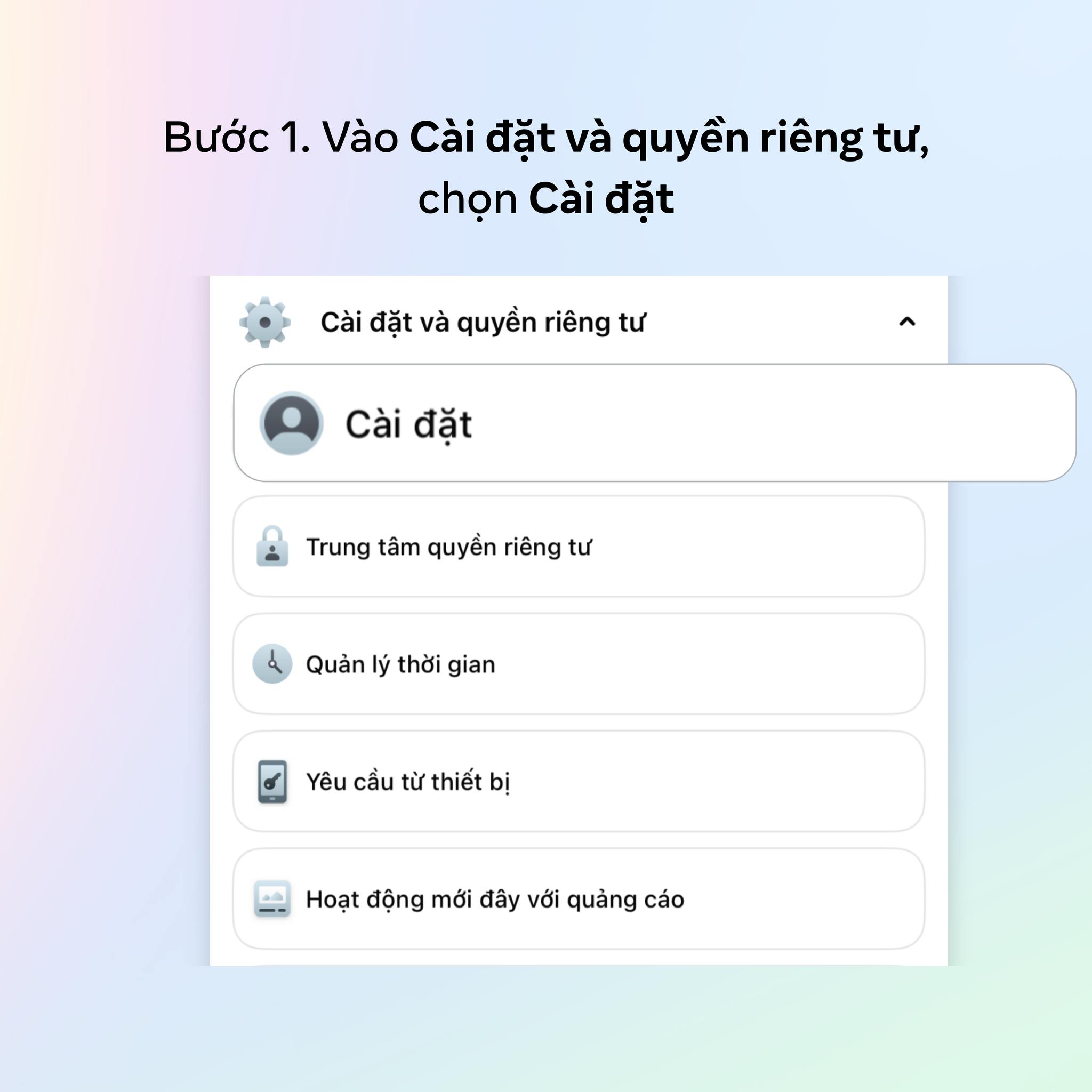 Bước 1: Mở Facebook → Chọn Trang cá nhân → Cài đặt