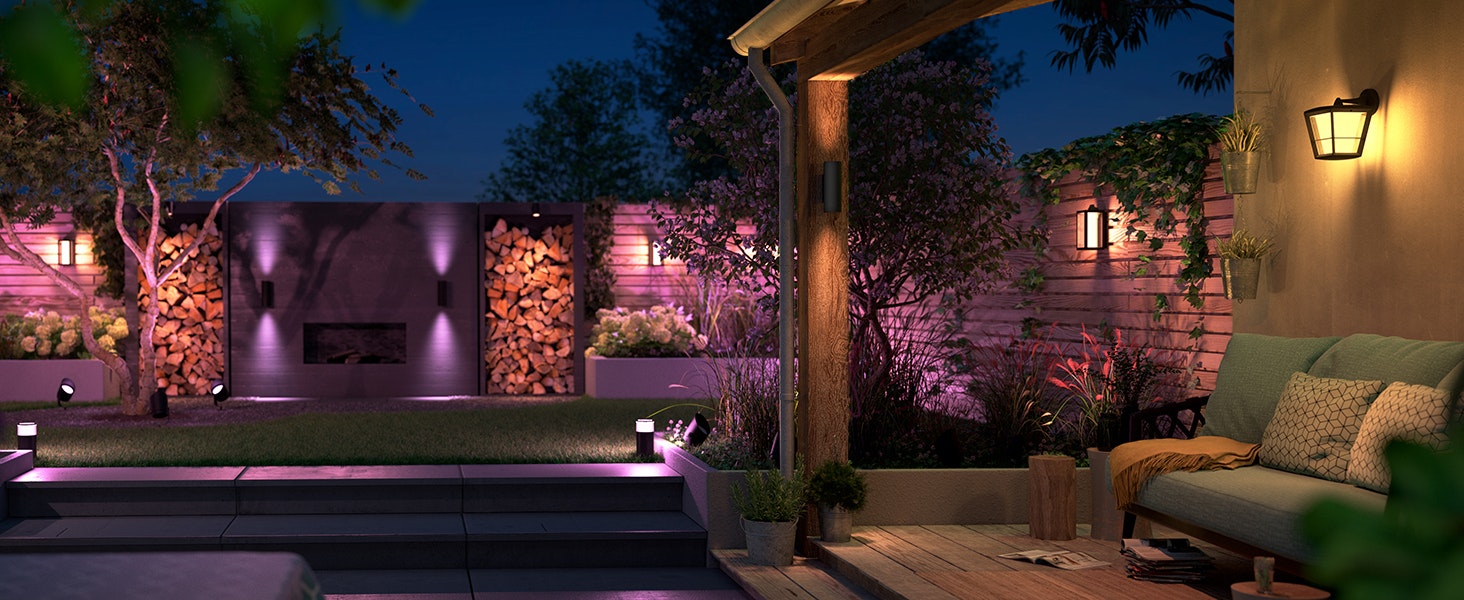 Dù là một bữa tiệc nướng BBQ sôi động, một buổi họp mặt sân vườn hoành tráng hay bữa tối lãng mạn dưới ánh sao – hệ thống đèn sân vườn Philips Hue Outdoor sẽ giúp ngôi nhà của bạn tỏa sáng hoàn hảo.
