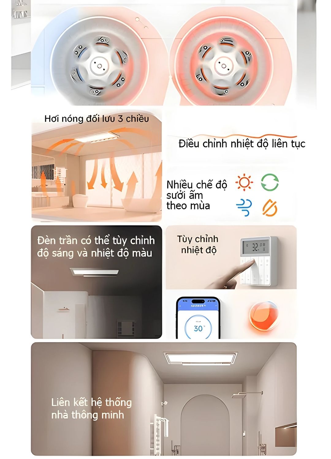 Ngoài chức năng sưởi ấm, Aqara Bathroom Heater T1 còn có chế độ thông gió, sấy khô và làm mát – hoàn hảo để sử dụng trong cả 4 mùa. Nó sẽ giữ cho không gian phòng tắm của bạn luôn trong lành, khô ráo, tạm biệt mùi ẩm ướt; tránh sự phát triển của vi khuẩn gây hại.