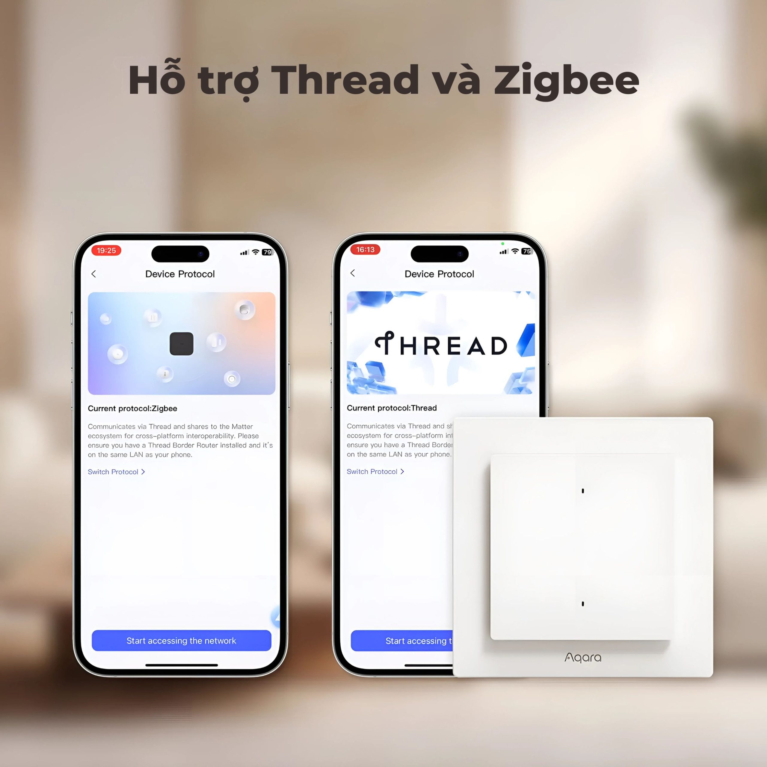- Công tắc vẫn có thể hoạt động độc lập hoặc kết hợp với các thiết bị khác qua giao thức Zigbee/Thread.