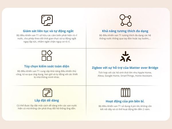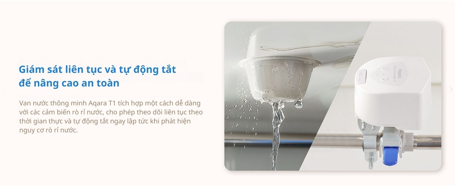 Khi kết hợp với cảm biến rò rỉ nước Aqara hoặc cảm biến khí Gas Aqara, Aqara Valve Controller sẽ tự động đóng van trong 5 – 20 giây sau khi phát hiện rò rỉ, giảm thiểu rủi ro và đảm bảo an toàn chủ động cho ngôi nhà.