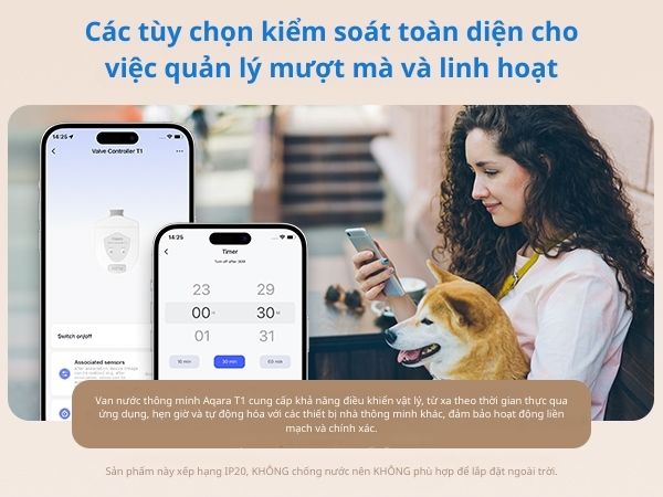 Bên cạnh đó, thiết bị cũng sở hữu khả năng điều khiển linh hoạt. Người dùng có thể thao tác trực tiếp trên thiết bị hoặc điều khiển từ xa qua ứng dụng hay thiết lập lịch trình tự động mở/tắt van nước/khí, giúp bạn tiết kiệm năng lượng.