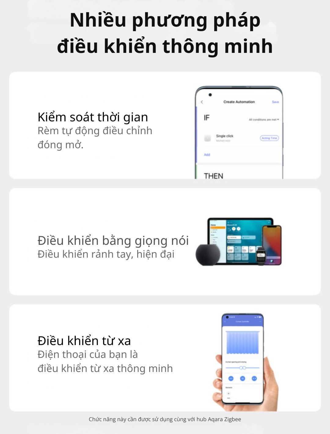 • Điều khiển từ xa qua điện thoại hoặc công tắc không dây Aqara D1