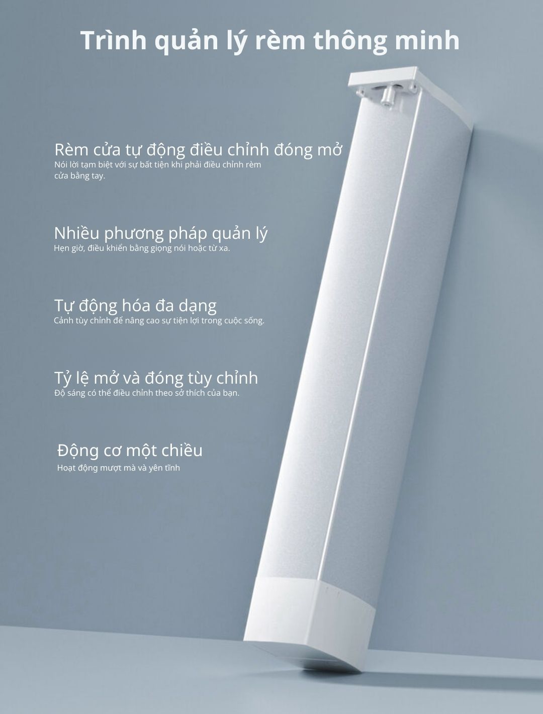 • Tốc độ di chuyển 14cm/giây êm ái, kéo tối đa 50kg rèm