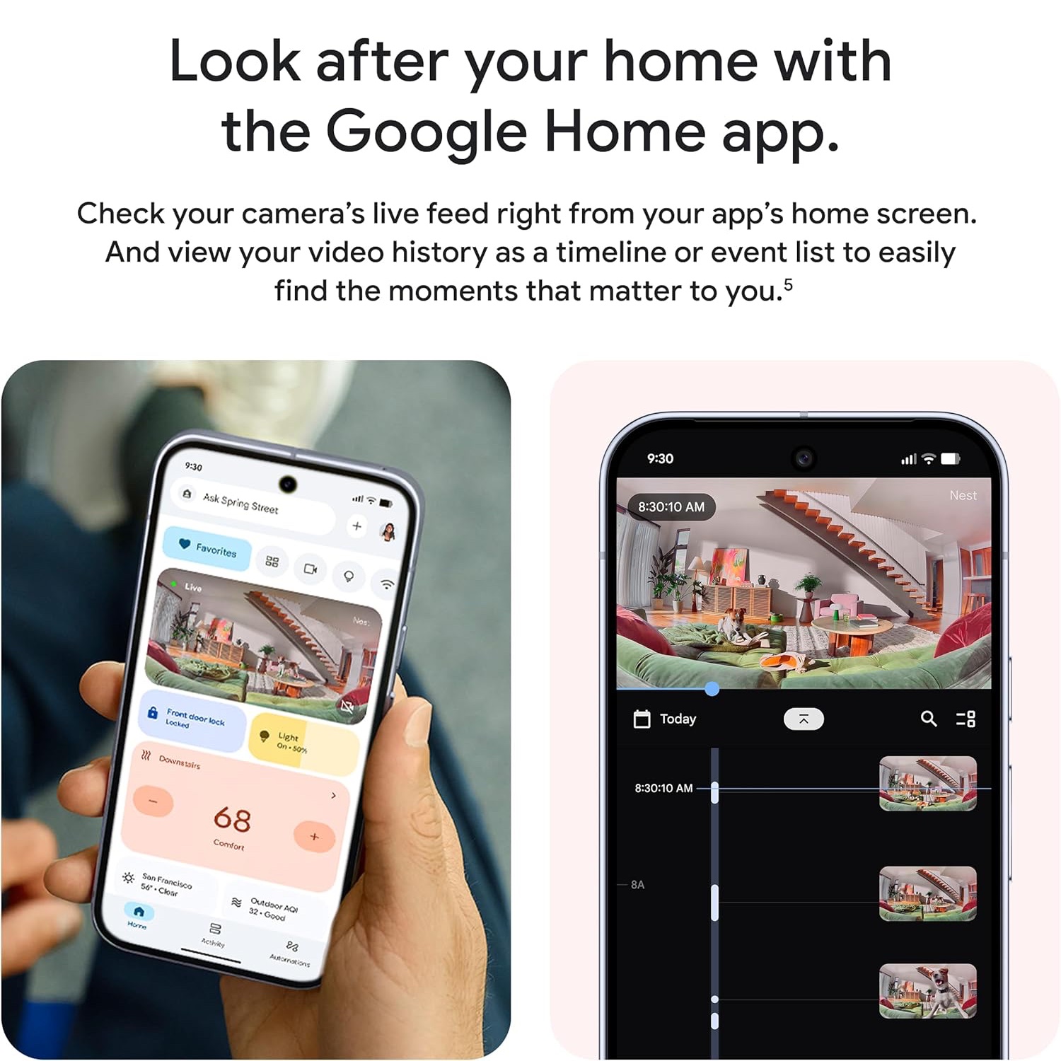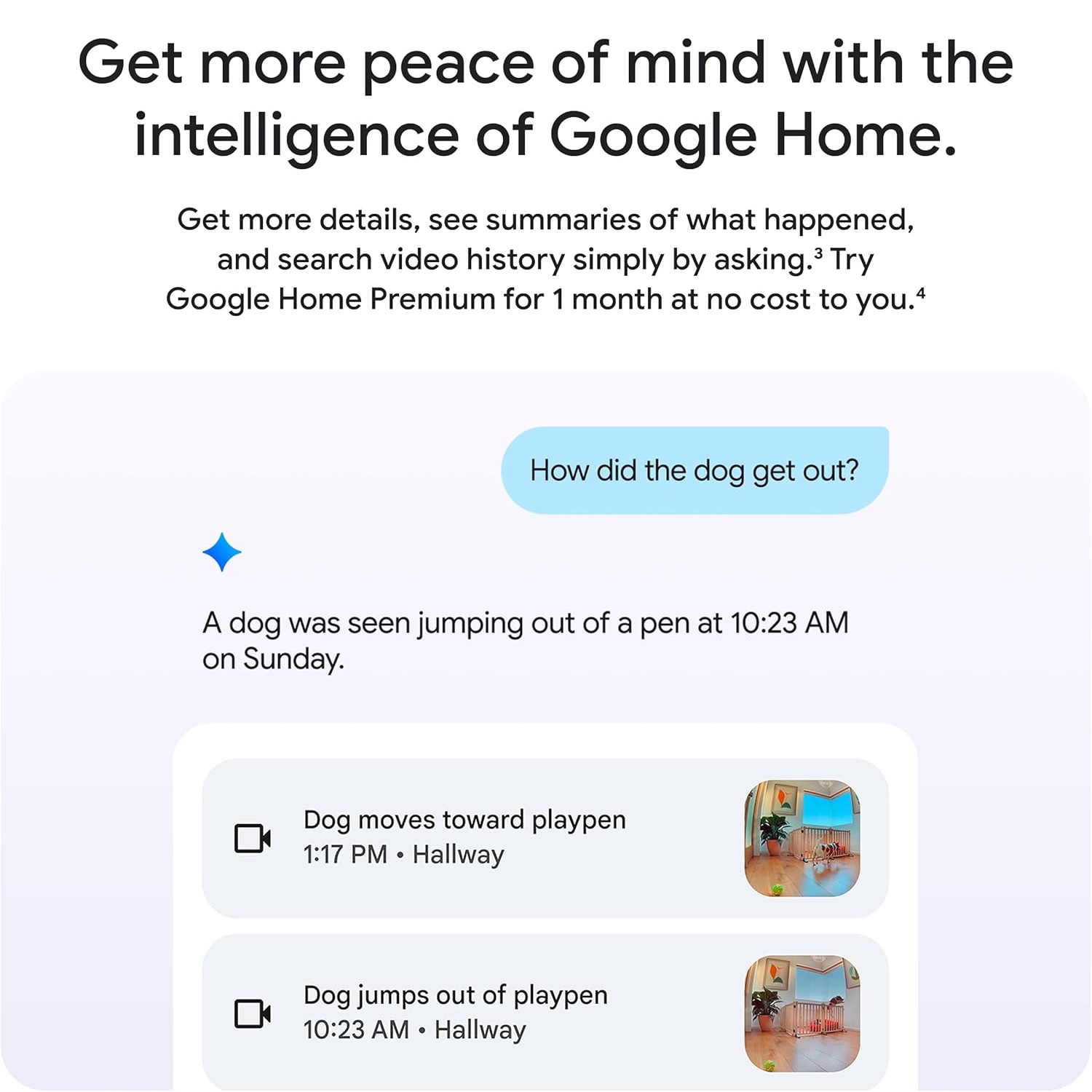 Tính năng Tìm kiếm thông minh cũng trở nên tự nhiên và linh hoạt hơn bao giờ hết. Bạn có thể tìm lại khoảnh khắc cần thiết bằng cách hỏi Google Assistant những câu hỏi tự nhiên như: “Did the dog go on the couch today?” hoặc “Show me when the kids came home”. Hệ thống sẽ tự động quét toàn bộ lịch sử video trong ngày, hiểu nội dung và trả về đúng đoạn clip bạn đang tìm kiếm.