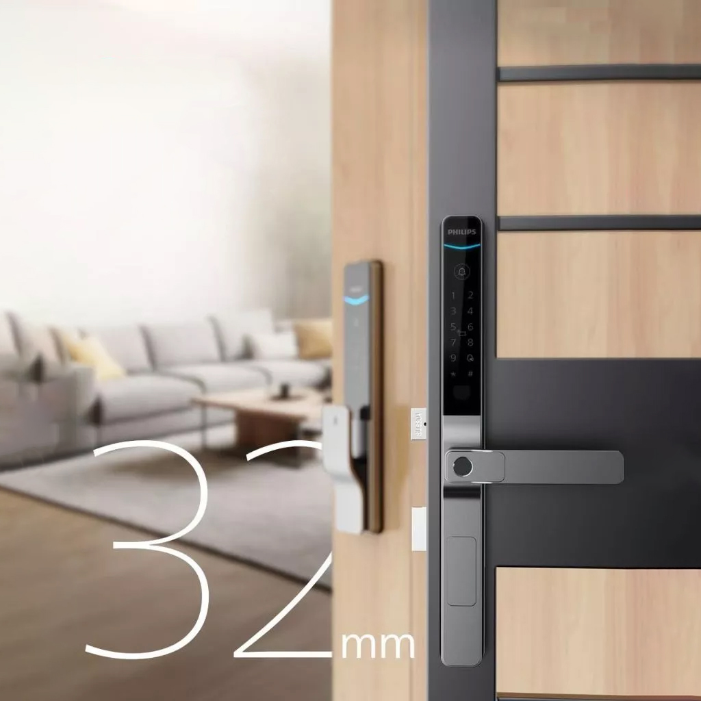 Khóa cửa vân tay Philips DDL611 được thiết kế dành riêng cho cửa nhôm với thân khóa chỉ 32mm, lý tưởng cho những hệ cửa có khung hẹp như cửa nhôm, cửa sắt hộp, hoặc cửa trượt. Với thiết kế này, khóa dễ dàng lắp đặt, đảm bảo tính thẩm mỹ cao mà vẫn giữ được sự chắc chắn và vận hành ổn định, bền bỉ.