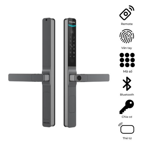 Được trang bị remote mở cửa từ xa và kết nối Bluetooth, khóa thông minh tay gạt Philips DDL611S-5HBS giúp bạn dễ dàng kiểm soát và theo dõi mọi hoạt động của cửa ra vào.