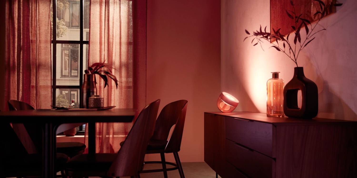 Đèn bàn của Philips Hue có thể di chuyển dễ dàng và được đặt ở bất cứ đâu (chỉ cần có ổ điện). Phòng khách, phòng bếp hay phòng ngủ đều phù hợp với Philips Hue Iris.