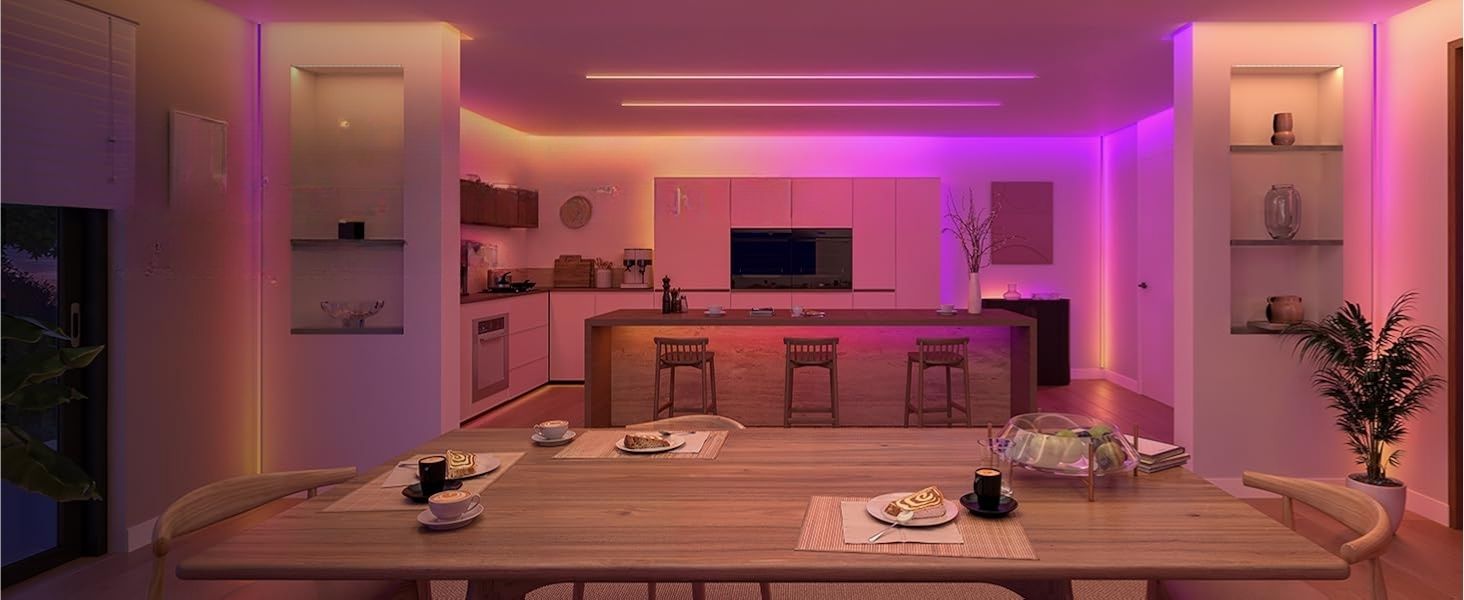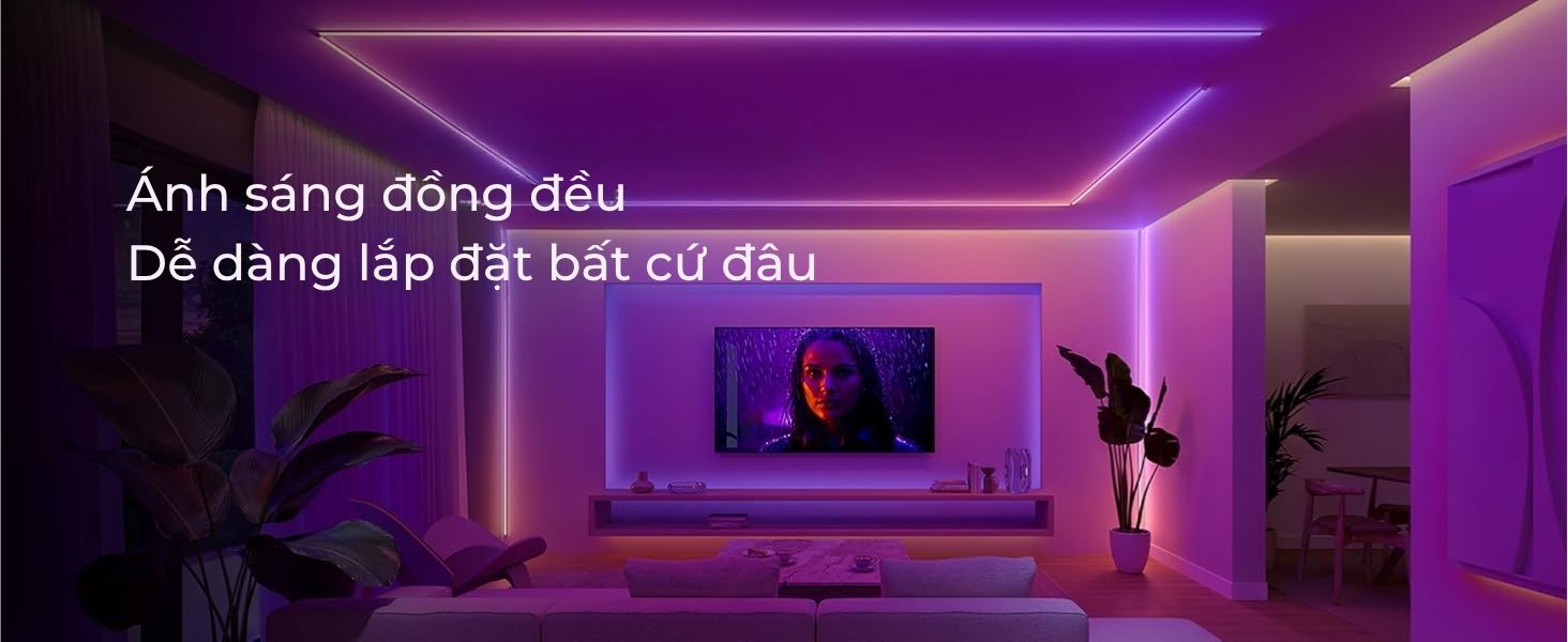 Khả năng cắt và lắp đặt linh hoạt giúp bạn trang trí mọi góc nội thất, từ trần nhà đến cầu thang. Tuy nhiên, dây đèn không thể nối dài (khác với các phiên bản Gradient Lightstrip trước đây).