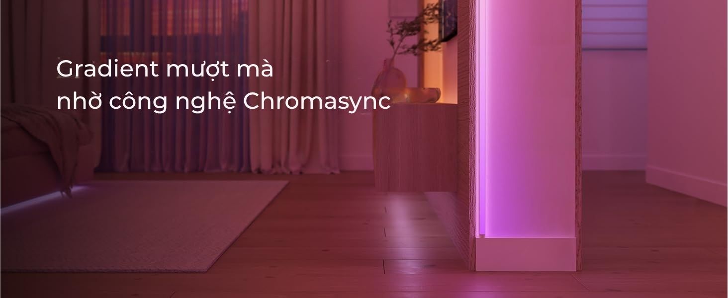Dải đèn cho phép người dùng cá nhân hóa không gian với màu sắc đa dạng và công nghệ Chomasync tạo ra hiệu ứng chuyển màu gradient liền mạch và chính xác.