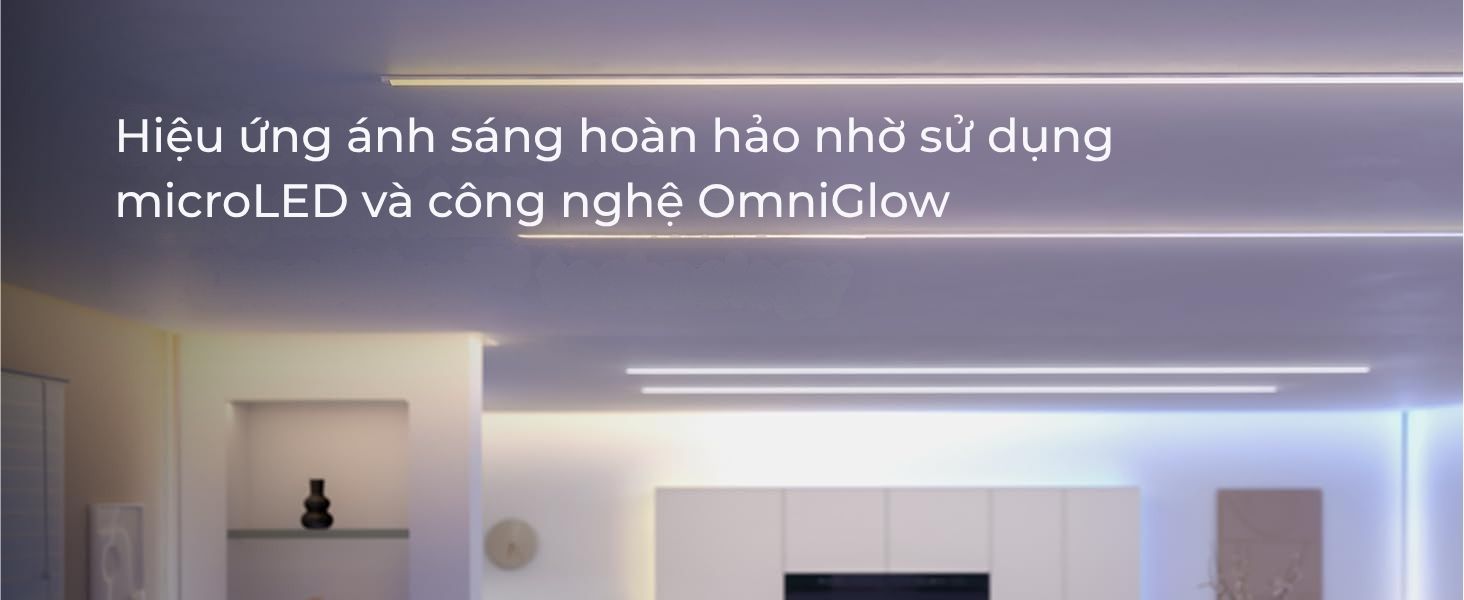 Philips Hue OmniGlow là dải đèn micro-LED đột phá của Philips Hue, sử dụng công nghệ OmniGlow để tạo ra ánh sáng đồng nhất, cùng hiệu ứng màu sắc gradient liền mạch nhờ công nghệ Chomasync.