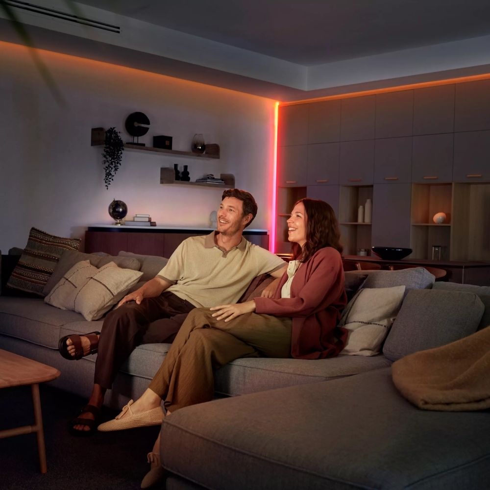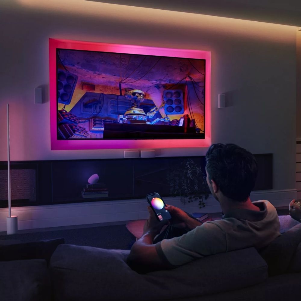 OmniGlow mang lại khả năng kiểm soát dễ dàng và linh hoạt qua ứng dụng Hue hoặc điều khiển bằng giọng nói. Khi kết hợp với bộ điều khiển trung tâm Hue Bridge Pro, bạn có thể kiểm soát toàn bộ ngôi nhà từ xa và thiết lập các lịch trình tự động hóa ánh sáng, mang lại sự tiện lợi và hiệu quả cao nhất.