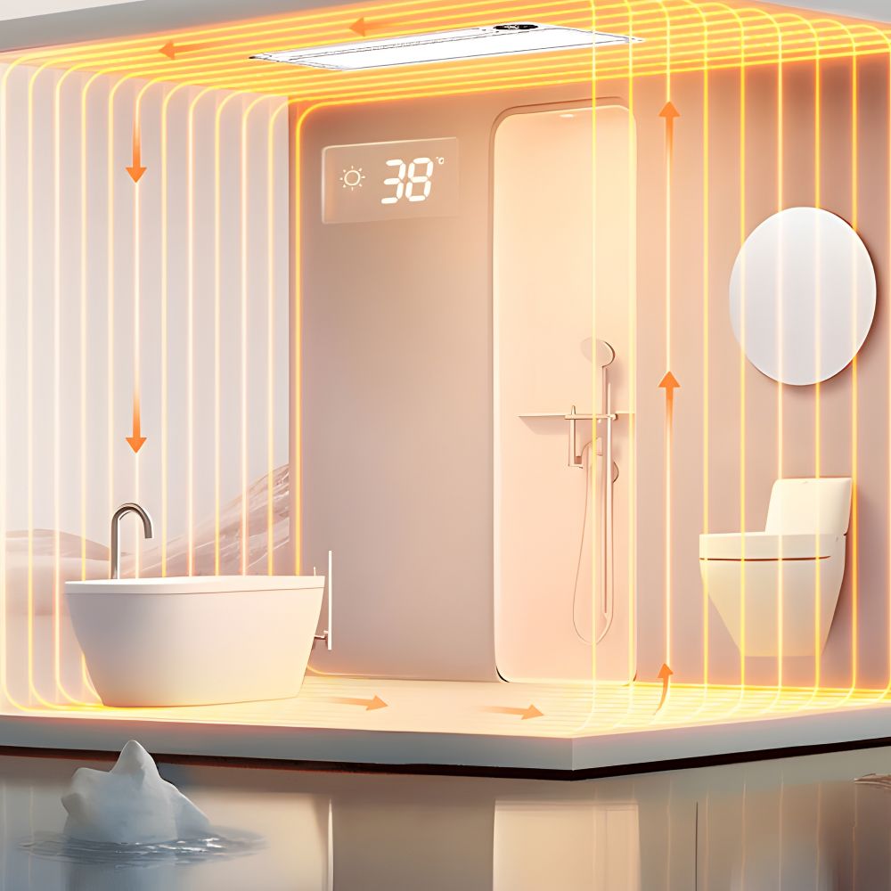 Sự kết hợp hoàn hảo này giải quyết triệt để vấn đề “bí khí” thường gặp trong phòng tắm đóng kín mùa đông. Không gian bên trong không chỉ được giữ ấm ổn định mà luồng không khí còn luôn tươi mới, loại bỏ hoàn toàn cảm giác ngột ngạt hay đọng hơi nước quá mức, mang lại trải nghiệm tắm thư giãn và dễ chịu nhất.