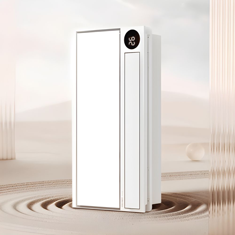 Đèn sưởi nhà tắm thông minh Yeelight Shark Pro M1 đột phá với thiết kế siêu mỏng 9.4cm cùng động cơ kép Dual Inverter, cho phép vừa sưởi ấm vừa thông gió giúp phòng tắm luôn ấm áp mà vẫn thoáng khí.