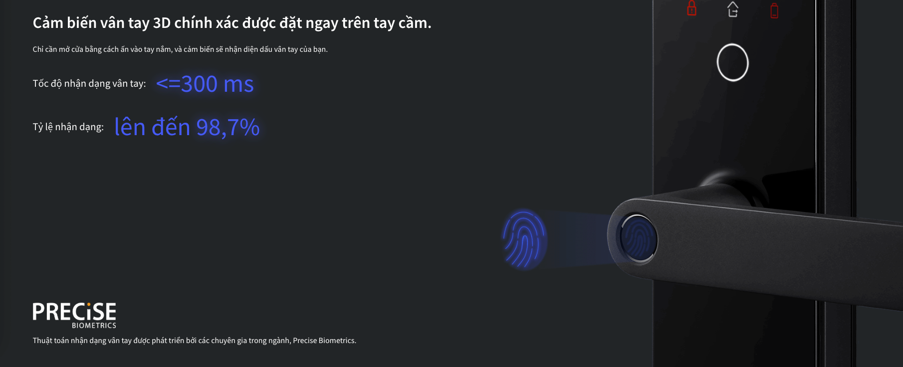 Điểm nhấn đáng chú ý trên cả hai mẫu khóa chính là công nghệ nhận diện vân tay siêu nhạy của Aqara, với tốc độ nhận dạng chỉ khoảng 0,3 giây và độ chính xác lên đến 98,6%. Riêng Aqara N100 còn được nâng cấp với cảm biến vân tay 3D đến từ Precise Biometrics hàng đầu thế giới trong lĩnh vực sinh trắc học, giúp tăng độ chính xác và mang lại trải nghiệm mở khóa nhanh chóng, ổn định hơn trong nhiều điều kiện sử dụng.